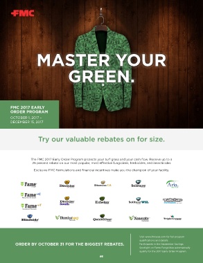 The FMC 2017 Early Order Program protects your turf grass and your cash flow. Receive up to a